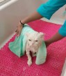 • Pre wet the Towel 10 seconds and squeeze dry. Use it on the pet's coat to absorb excess water. After using the Towel, Squeeze to drain absorbed water and leave it to dry.